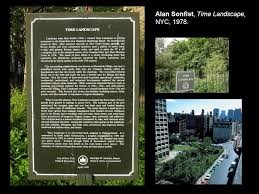 Sonfist emblematikus munkája, a Time Landscape egy, New York megépítése előtt létezett, prekoloniális erdő újratelepítése Manhattanben, amely a mai napig látható "emlékmű". "Éppúgy mint a háborús emlékműveknél, amelyek a katonák életére és halálára emlékeznek, az olyan természeti jelenségek, mint a folyók, a források és a természetes felszínek életéről és haláláról is meg kell emlékeznünk. A köztéri művészet is lehet emlékeztetője annak, hogy a város egykor egy erdő vagy láp volt" emlékezik Sonfist. (idézi Erőss, 2008.)